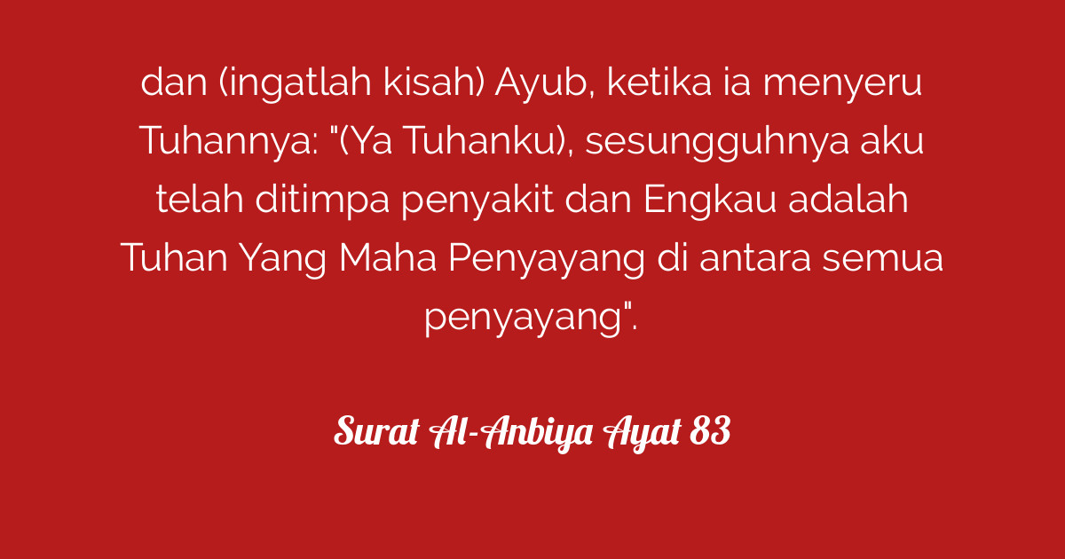 021 al anbiya terjemah bahasa indonesia. Jika pendapat ini bersumber dari konteks ayat, sesungguhnya pendapat ini jauh dari kebenaran. Doa nabi ayyub ketika sakit dan sembuh surah al anbiya 83 84. Surah anbiya ayat 83 with english translation. Yang ditimpa suatu penyakit yang berat sehingga berdoa memohon pertolongan tuhannya untuk melenyapkan.
